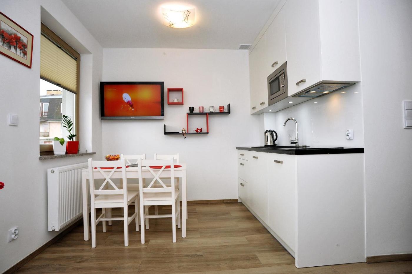 Apartament z 1 sypialnią. Boasting a private entrance, this apartment comes with 1 living room, 1 separate bedroom and 1 bathroom with a walk-in shower and a hairdryer. The well-equipped kitchen has a stovetop, a refrigerator, kitchenware and a microwave. Featuring a terrace with garden views, this apartment also features a washing machine and a flat-screen TV. The unit has 2 beds. Apartament - 4 osobowy. Powierzchnia pokoju ok.: 34 mkw.