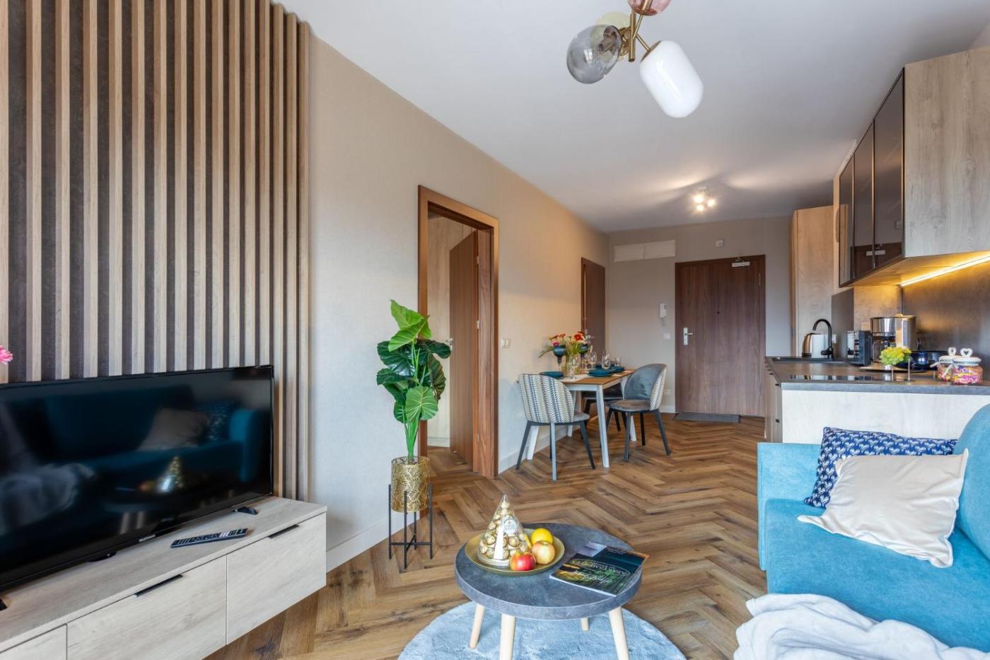 Apartament z 1 sypialnią. This apartment features a pool with a view and a sauna. This apartment comes with 1 living room, 1 separate bedroom and 1 bathroom with a shower and bathrobes. In the well-fitted kitchenette, guests will find a stovetop, a refrigerator, a dishwasher and a microwave. Boasting a balcony with pool views, this apartment also features a tea and coffee maker and a flat-screen TV with satellite channels. The unit has 2 beds. Apartament - 4 osobowy. Powierzchnia pokoju ok.: 37 mkw.